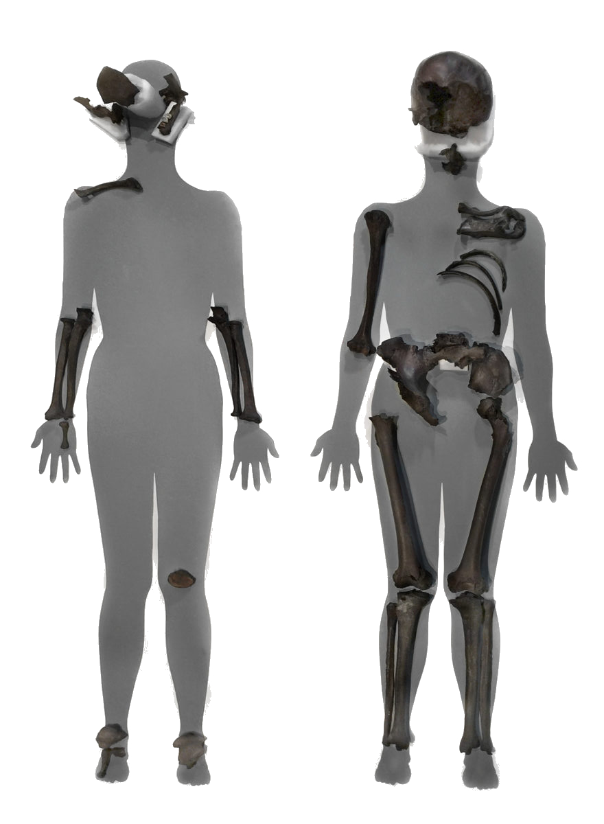 The body of the oldest woman was left intact. Although she lived to a very old age, she had suffered serious illness during her childhood and early youth. She died of cancer, either ovarian or breast cancer. Her bones were brittle and vertebrae were constricted. After reaching adulthood, she sustained an injury to her left knee that would have led her to limp. Her diet included a high proportion of meat rather than fish. She was laid out in a very fine red wool dress with a lozenge twill pattern and a fine white linen veil in a gauze weave. Small silk strips were appliqued onto a tunic worn under the red dress.